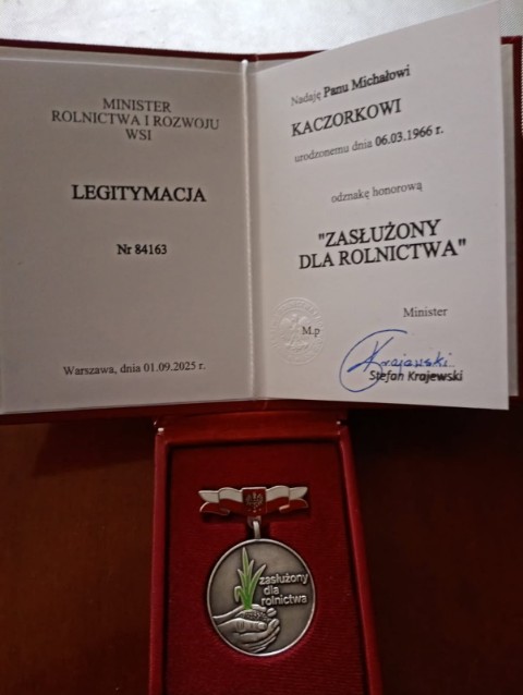 Podczas I Kongresu Hodowców Bydła Mięsnego, organizowanego przez Polski Związek Hodowców i Producentów Bydła Mięsnego (PZHiPBM) w dniach 8-9.12.2025 r. w Jachrance, Pan Michał Kaczorek, mieszkaniec naszej gminy, został uhonorowany odznaczeniem honorowym „Zasłużony dla Rolnictwa”.