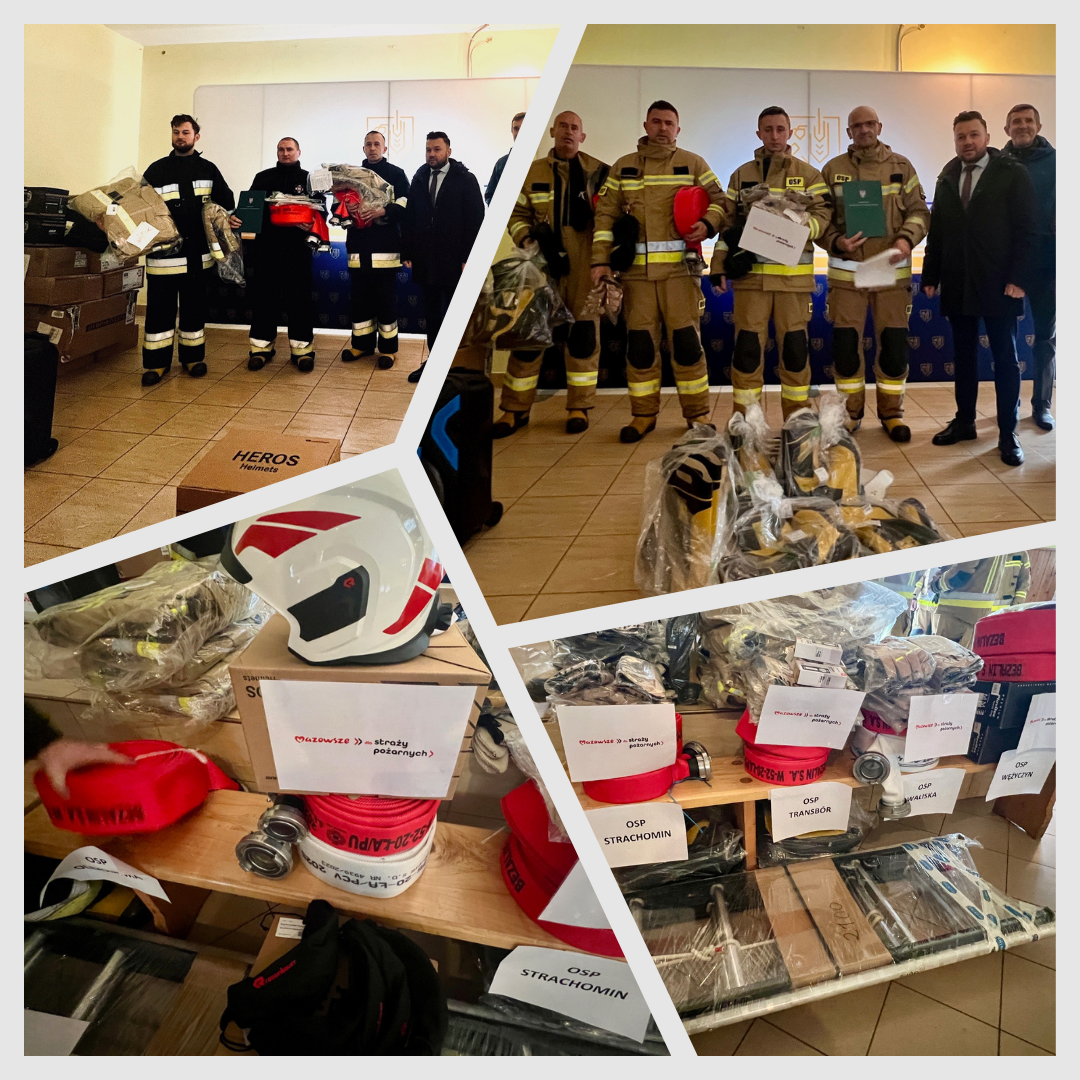 Po podsumowaniu zaproszono druhów na uroczystość przekazania sprzętu strażackiego zakupionego w ramach Instrumentu „Mazowsze dla Straży Pożarnych”. W spotkaniu udział wziął przedstawiciel Samorządu Województwa Mazowieckiego Zastępca Dyrektora ds. Nieruchomości Kamil Nalewka, Burmistrz Latowicza Bogdan Świątek-Górski oraz Zastępca Burmistrza Arkadiusz Reda. W ramach zadania zakupiono głównie środki ochrony indywidualnej strażaka, które są niezbędne do udziału w akcji ratowniczej oraz sprzęt specjalistyczny tj. węże strażackie i drabina.