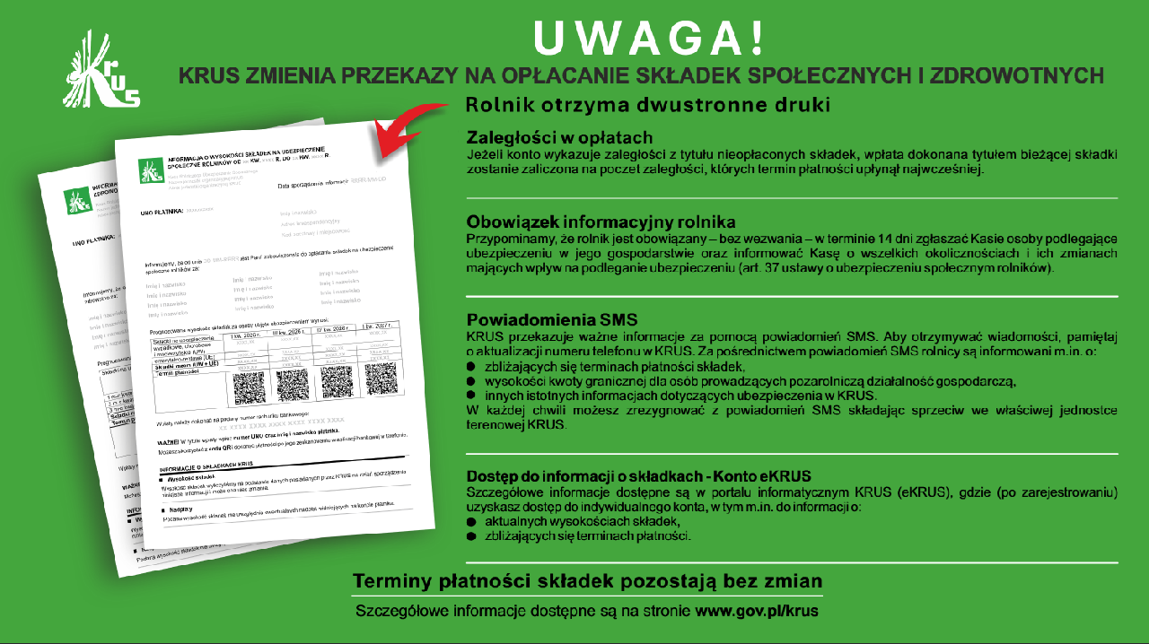 Kasa Rolniczego Ubezpieczenia Społecznego wprowadza istotne zmiany w sposobie informowania o składkach oraz nowe stawki, które obowiązują od II kwartału 2026 roku. Jak informuje Anna Choma, Dyrektor Oddziału Regionalnego w Warszawie, jest to ważny krok w kierunku unowocześnienia systemu ubezpieczeń społecznych rolników i ograniczenia konieczności korzystania z papierowych dokumentów.