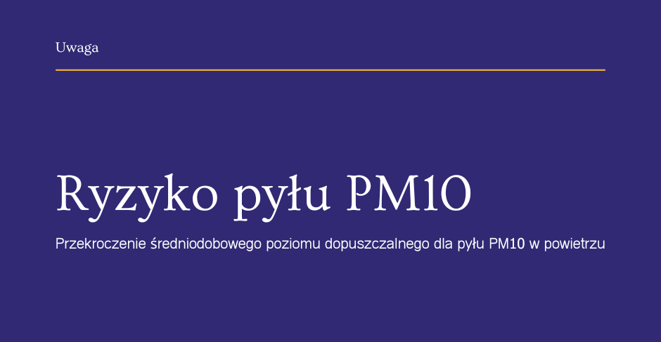 Powiadomienie o ryzyku wystąpienia przekroczenia średniodobowego poziomu dopuszczalnego dla pyłu zawieszonego PM10 w powietrzu
