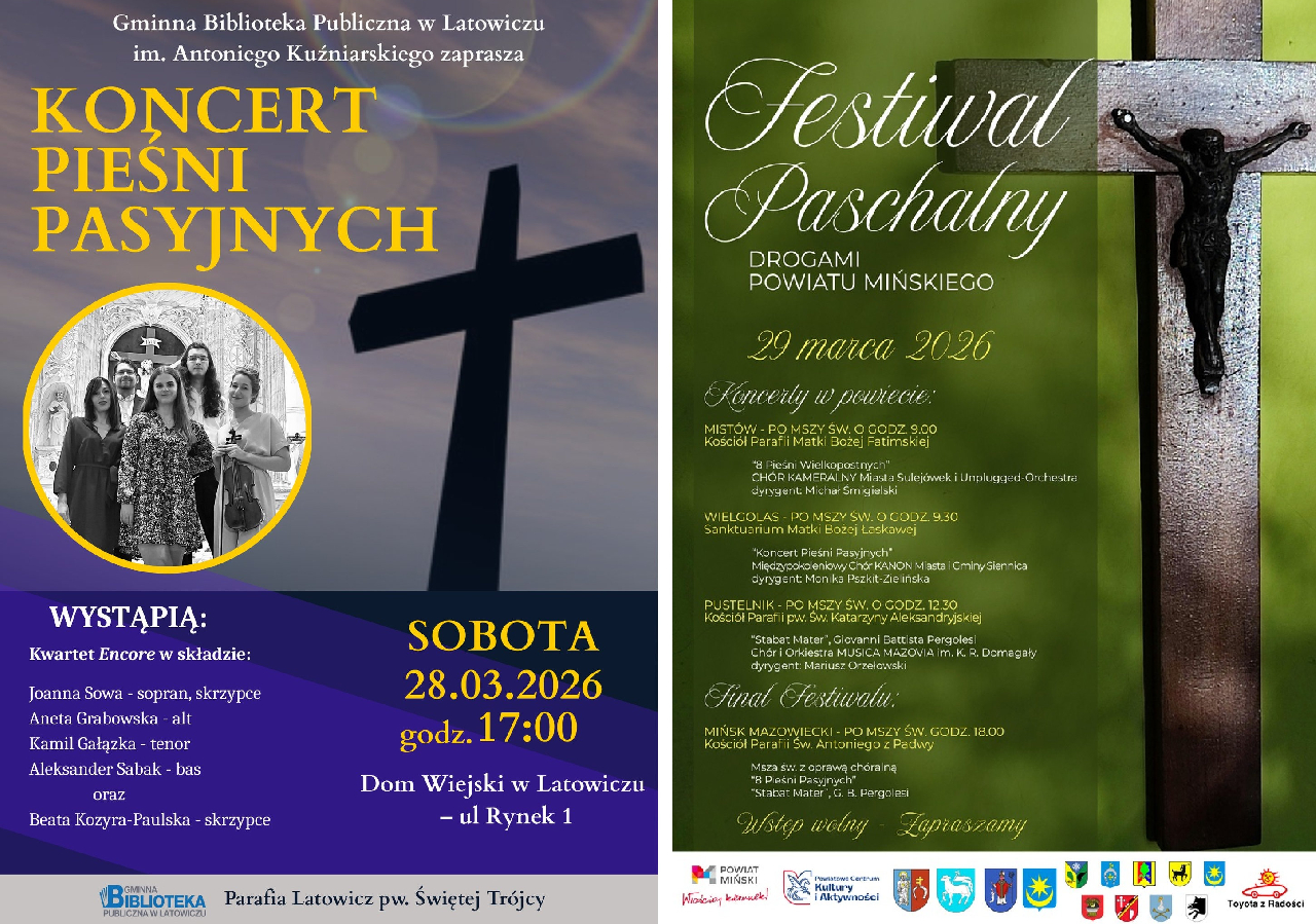 Serdecznie zapraszamy mieszkańców do udziału w wyjątkowych wydarzeniach muzycznych związanych z okresem Wielkiego Postu i zbliżającymi się Świętami Wielkanocnymi... czytaj więcej...