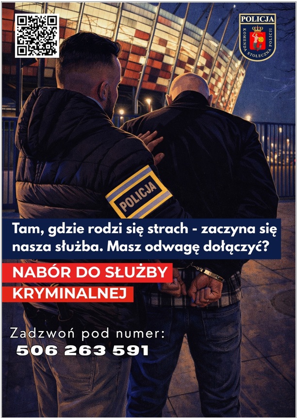 Już dzisiaj rusza nabór do służby kryminalnej w garnizonie stołecznym. To wyjątkowa okazja dla osób, które chcą realizować się zawodowo w jednej z najbardziej wymagających i jednocześnie najbardziej prestiżowych dziedzin pracy w Policji....